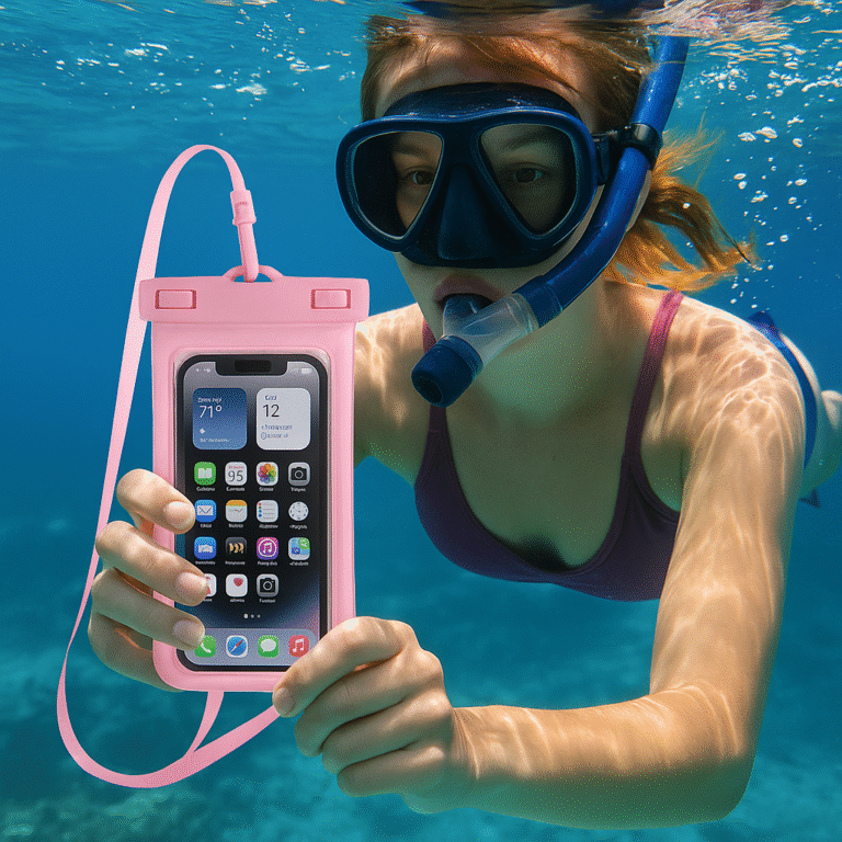 Waterproof Phone Pouch Pink with Lanyard for iPhone, Samsung & More (Up to 7″)
